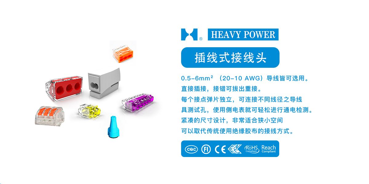 一、插線式接線頭產(chǎn)品特點1.0.5-6mm2(20-10 AWG)導(dǎo)線皆可選用。2.直接插接, 接錯可拔出重接。3.每個接點彈片獨立,可連接不同線徑之導(dǎo)線。4.具測試孔,使用側(cè)電表就可輕松進行通電檢測。5.緊湊的尺寸設(shè)計,非常適合狹小空間。6.可以取代傳統(tǒng)使用絕緣膠布的接線方式。